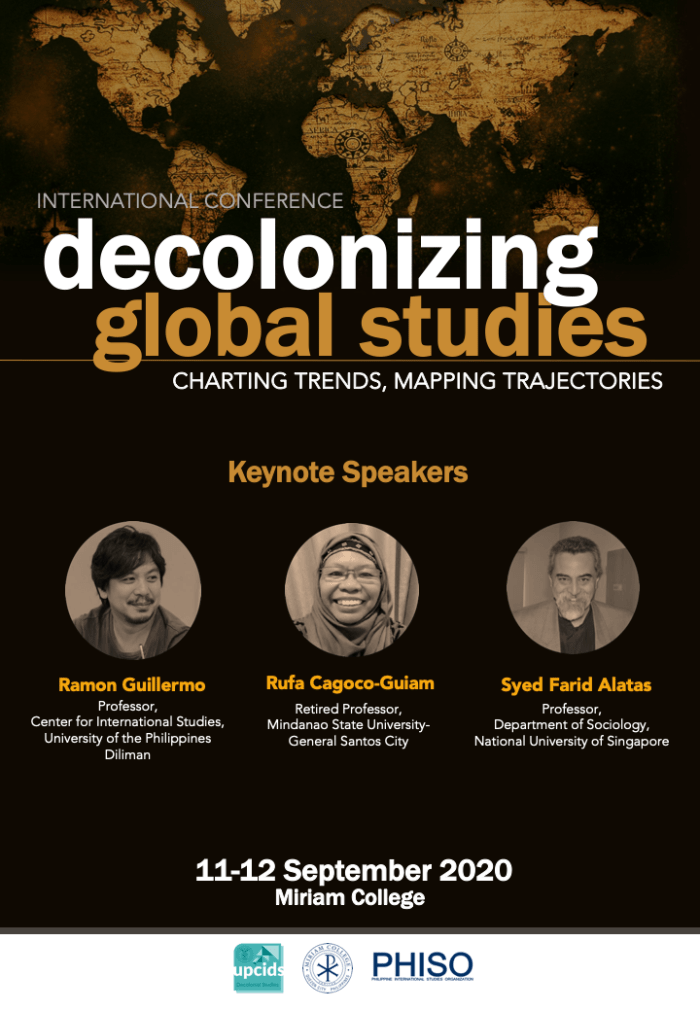 The impulse to study the global and the international has brought forth a diversity in approaches, methods, and perspectives. In recent years, there has also been a sustained engagement with Western-oriented assumptions and premises. Grounded on interrogating Western models and theorizing in an attempt to pluralize discourses, scholars have launched critiques and proposed alternatives in nuancing the “global” and “globalization”; modernity and postmodernity; colonial and postcolonial conditions. One such endeavor is seen in a decolonial approach highlighting the need to unpack aspects of Western modernity in postcolonial states through a critical engagement with colonial-era texts, collective memory and the use of both colonial and local languages. This international conference aims to contribute and further the discussions in these expanding fields by charting trends and mapping trajectories in decolonizing global studies. With 2021 marking the 500th year commemoration of the first circumnavigation of the world comes additional impetus in the need to revisit the beginnings and impacts of the cultural encounters that contributed to the contemporary configurations of international affairs on the level of the political, economic, social, cultural, and ideological.